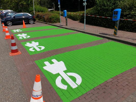 Wegmarkering parkeerplaatsen laadplein Kia Nederland.