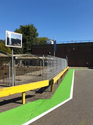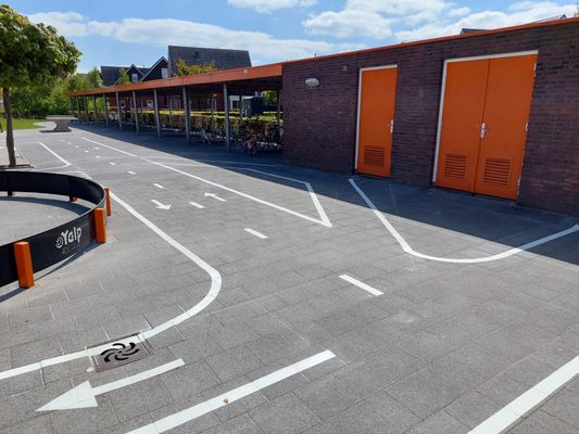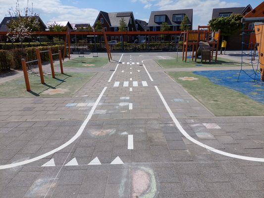 TrafficSuppy biedt ook maatwerk als het gaat om het inrichten en markeren van verkeerspleintjes op schoolpleinen. Dit project bij een basisschool in Zwolle is geheel op locatie uitgevoerd aan de hand van een vooraf verstrekte grove schets. Deze markering is uitgevoerd in koudplast i.v.m. een langere levensduur en kortere droogtijd ten opzichte van wegenverf.