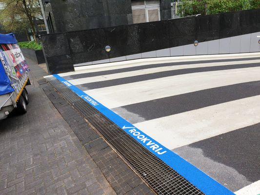 In opdracht van ENGIE een groot aantal vestigingen en buitenterreinen van ABN Amro voorzien van 'rookvrije terrein' wegmarkering. Naast de wegmarkering produceren, leveren en plaatsen wij ook de bijbehorende 'Rookvrije Generatie' informatieborden en tegels.