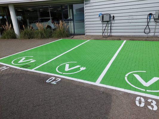 In opdracht van Croonwolter&dros heeft TrafficSuppy bij ziekenhuis Gelderse Vallei diverse markeringen aangebracht. Deze wegmarkeringen zijn aangebracht op de parkeervakken welke voorzien zijn van een laadpaal, en zijn herkenbaar uitgevoerd in een groen witte kleurstelling met een duidelijk laadpunt symbool.