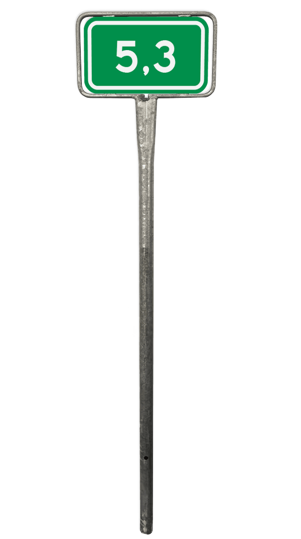 Officieel aluminium hectometerpaal met dubbelzijdige vlak bord.
