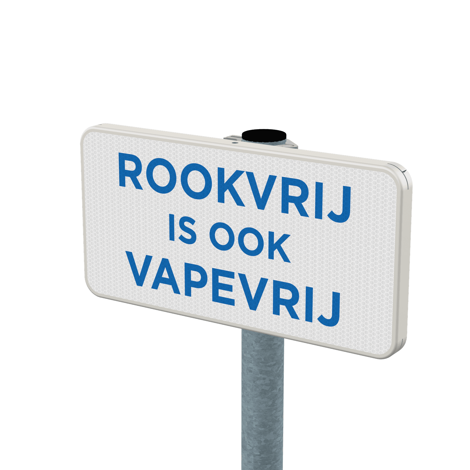 Officieel aluminium onderbord "Rookvrij is ook Vapevrij" voor onder het officiële Rookvrije Generatie informatiebord, met een dubbel omgezette rand.