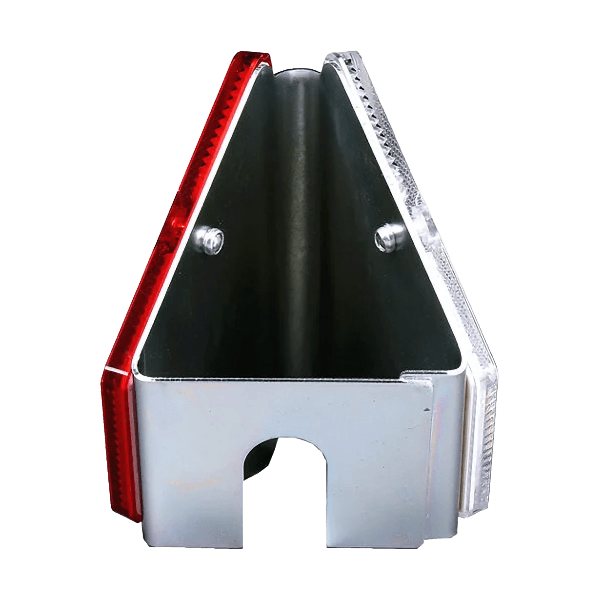 Deze geleiderailreflector is uitgevoerd in een trapeziumvormige aluminium behuizing met aan beide zijden een reflecterend vlak. De reflector is speciaal ontworpen voor montage op geleiderails en vangrails, maar kan ook op schuttingen, muren of palen worden bevestigd. Doordat de reflector aan twee zijden licht terugkaatst, is hij zichtbaar vanuit beide rijrichtingen en levert hij een duidelijke visuele geleiding voor weggebruikers.
