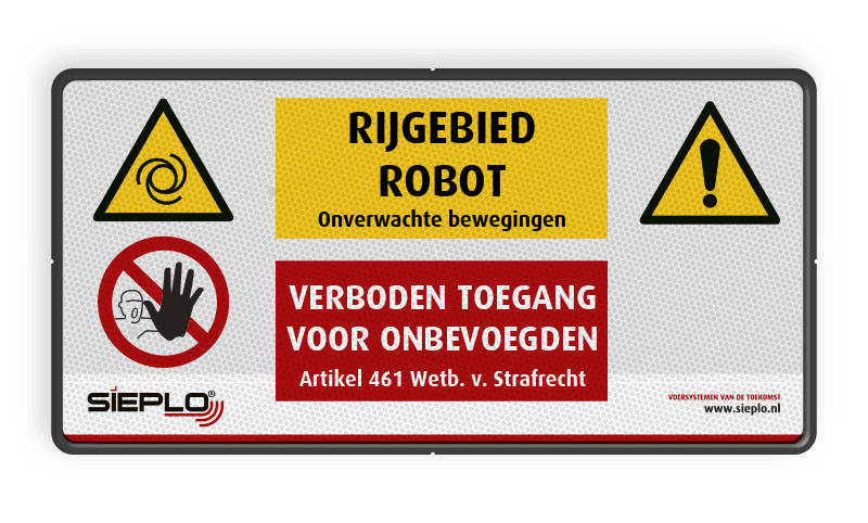 Veiligheidsbord 2:1 - Waarschuwing bewegende mechanische delen / Robot + logo / in huisstijl