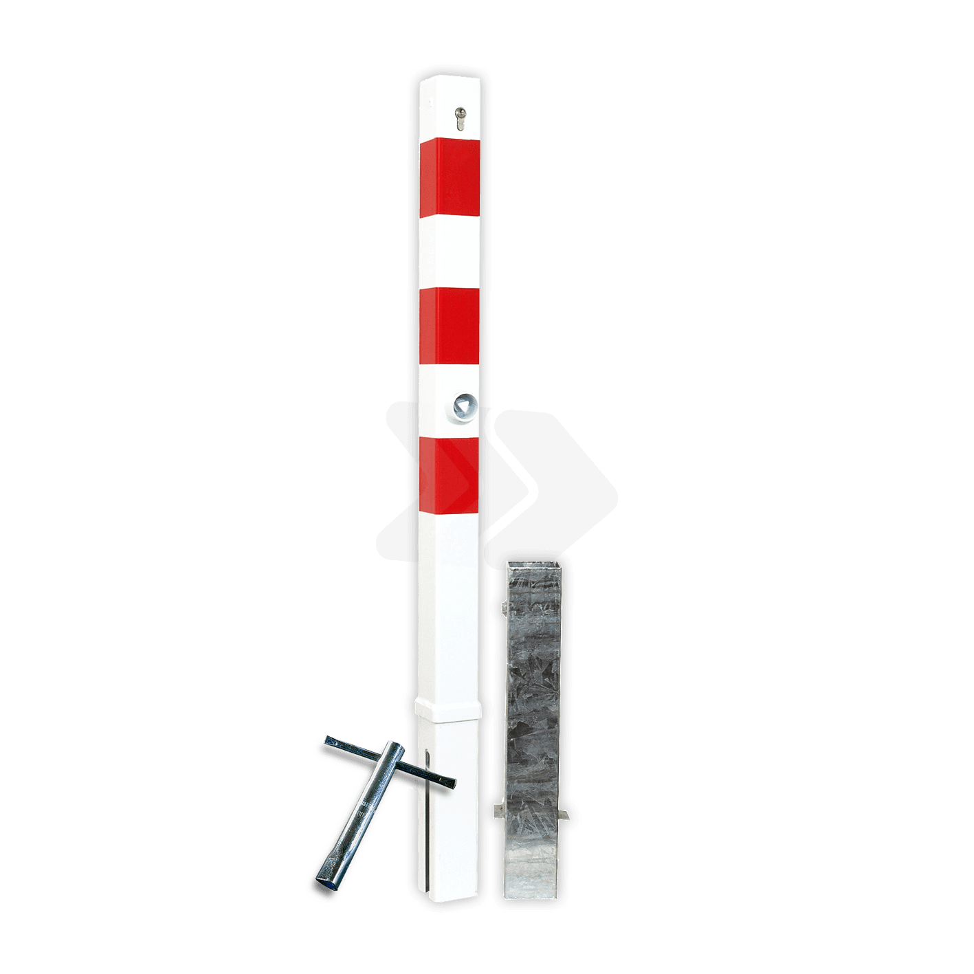 Verzinkt stalen anti parkeerpaal verwijderbaar rood wit gepoedercoat. Deze afzetpaal is eenvoudig verwijderbaar met een driekant- of cilinderslot (of beiden). Zodoende kan de afzetpal in geval van nood (bijv. hulpdiensten) alsnog verwijderd worden zodat de doorgaan vrij is.
