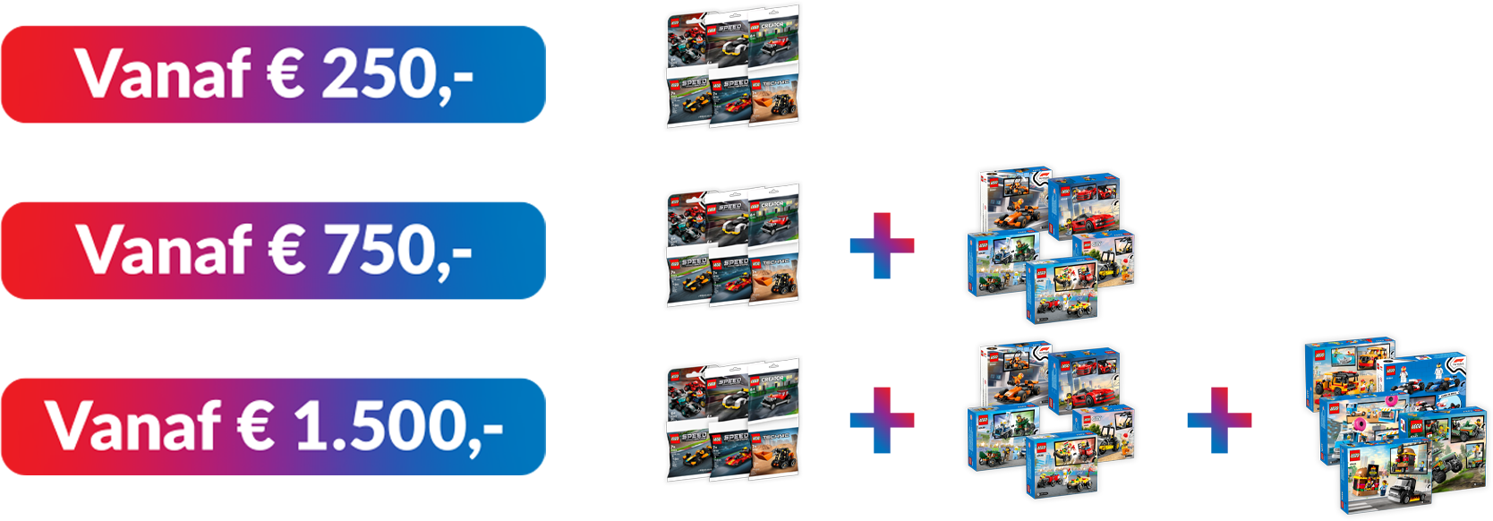 3. Vanaf *€ 1500,- 1x LEGO (klein) + 1x LEGO (medium) + 1x LEGO (groot)